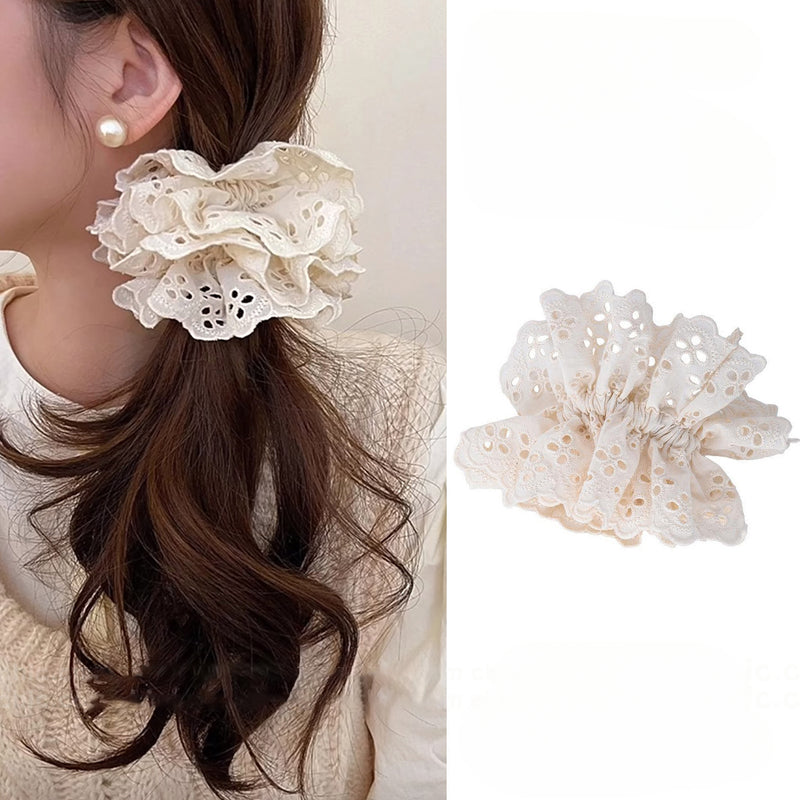 E廠-趙露思同款白色紅色蕾絲大腸髮圈女韓系高級感頭繩頭花髮飾頭飾「27091」25.06-3