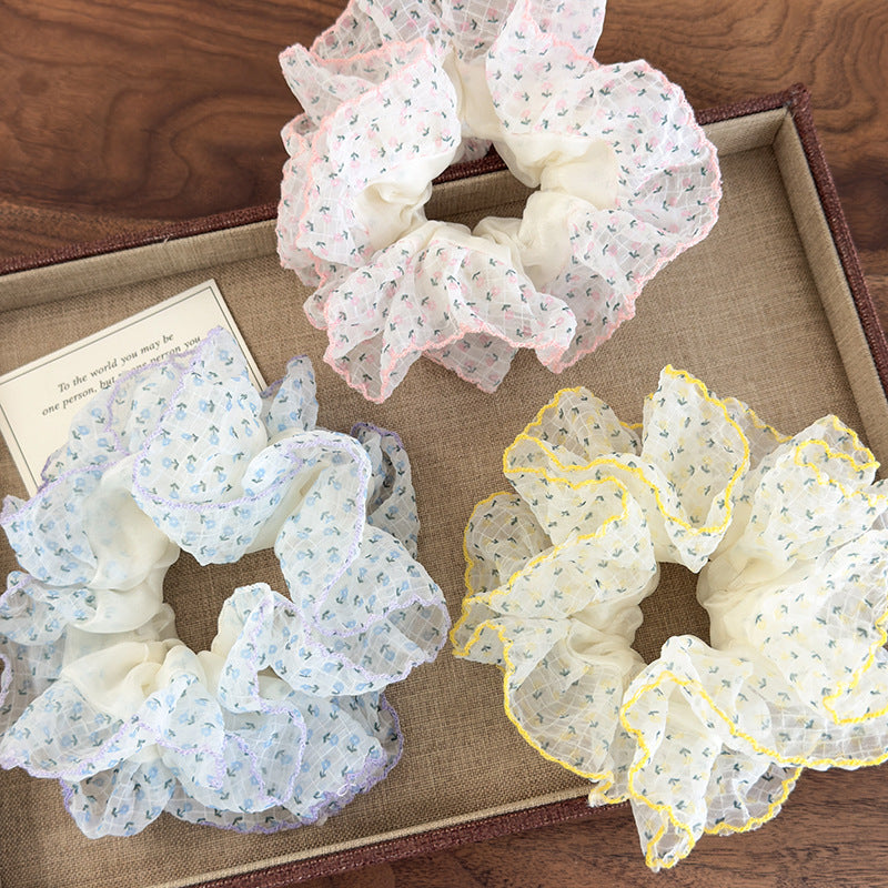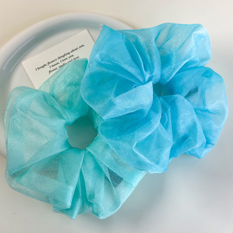 E廠-夏日薄荷 ins湖水藍網紗大腸髮圈女超大清涼感髮繩小清新百搭髮飾「26963」25.05-4