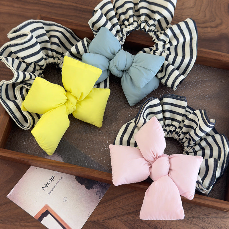E廠-可愛麵包蝴蝶結條紋大腸圈韓系少女丸子頭皮筋充棉髮圈2025髮飾品「26918」25.05-3