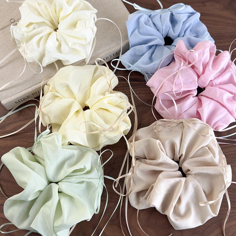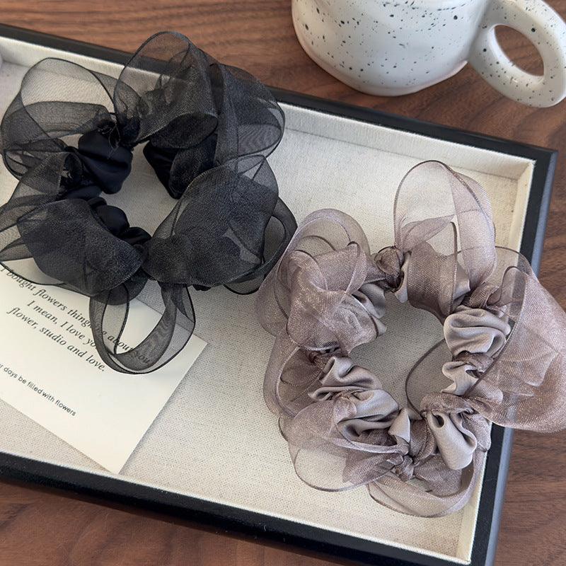 E廠-法式芭蕾風歐根紗絲帶蝴蝶結大腸網紗髮圈簡約百搭新款髮飾髮繩女「26634」25.03-2