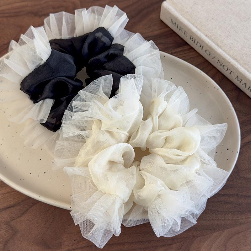 E廠-法式芭蕾高級霧感網紗褶皺大腸髮圈蓬松顯髮量丸子頭髮繩少女頭繩「26653」25.03-2