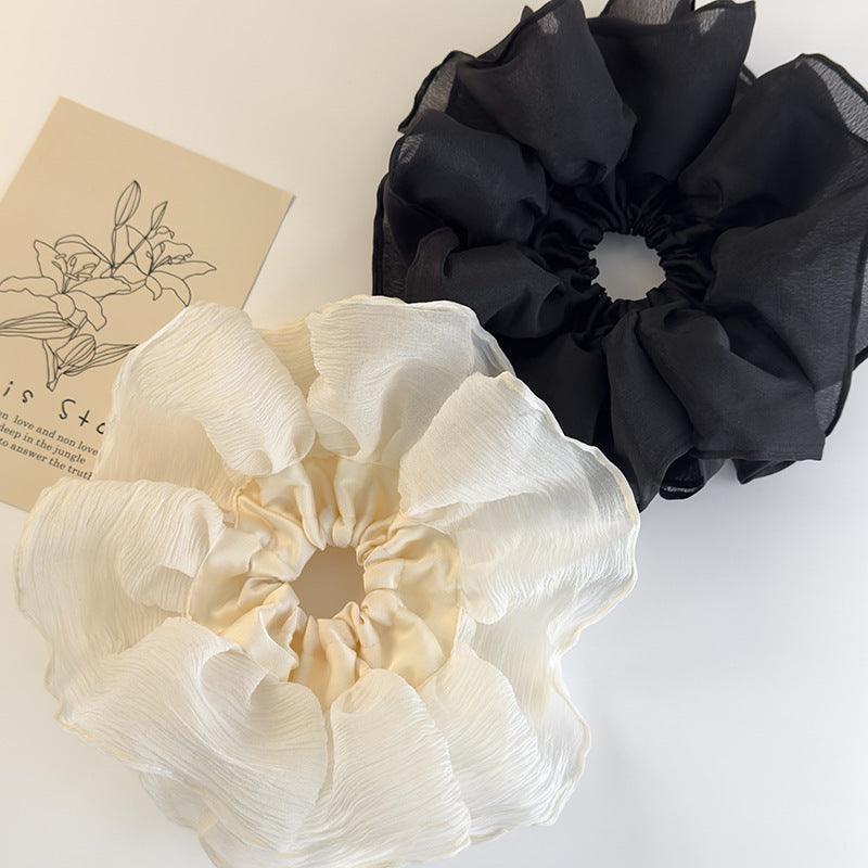 E廠-法式復古雙層網紗布藝雙拼褶皺超大號大腸圈髮圈時尚扎馬尾頭花女「26651」25.03-2