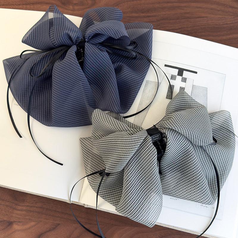 E廠-2025春季新款韓系英倫風咖啡色黑白小格子蝴蝶結絲帶髮夾鯊魚夾女「26580」25.03-1