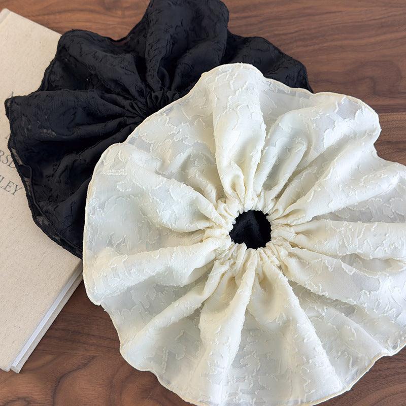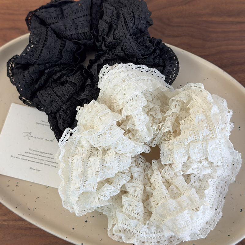 E廠-西米壓風純欲超仙白色蕾絲花邊布藝大號髮圈頭飾大腸圈髮飾新款「26587」25.03-1