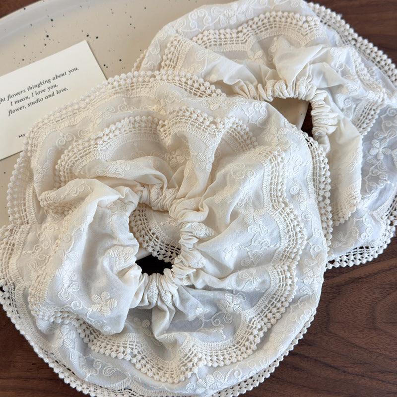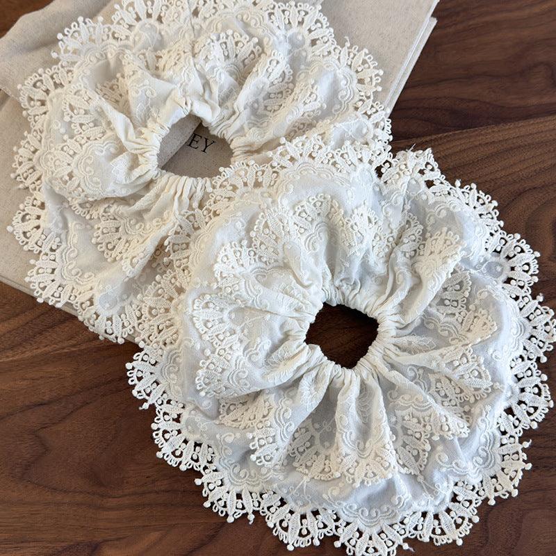 E廠-韓版重工超大蕾絲裙擺棉紗刺繡髮圈女半扎馬尾髮繩大腸髮圈頭花「26586」25.03-1