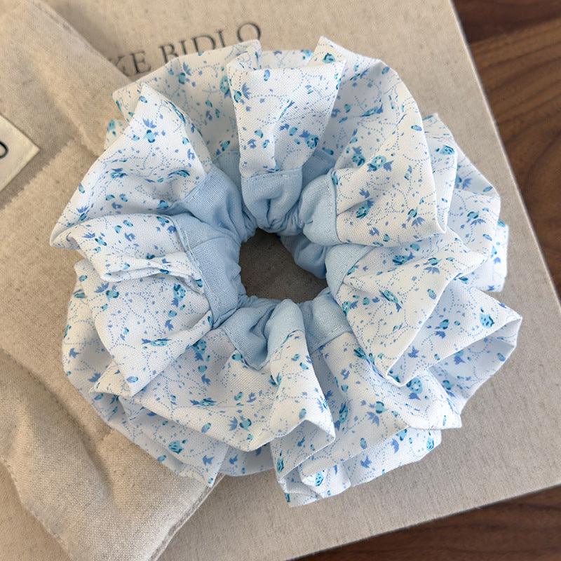 E廠-韓系溫柔藍色碎花高彈力髮圈大腸圈大號丸子頭盤髮頭花髮繩頭飾女「26579」25.03-1
