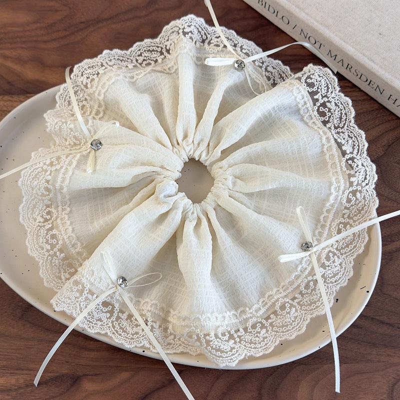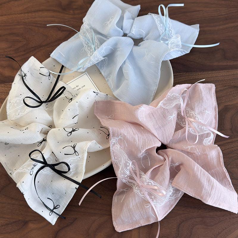 E廠-芭蕾風絲帶蝴蝶結蕾絲花邊方巾大腸圈清新超仙田園風少女髮飾髮圈「26567」25.03-1