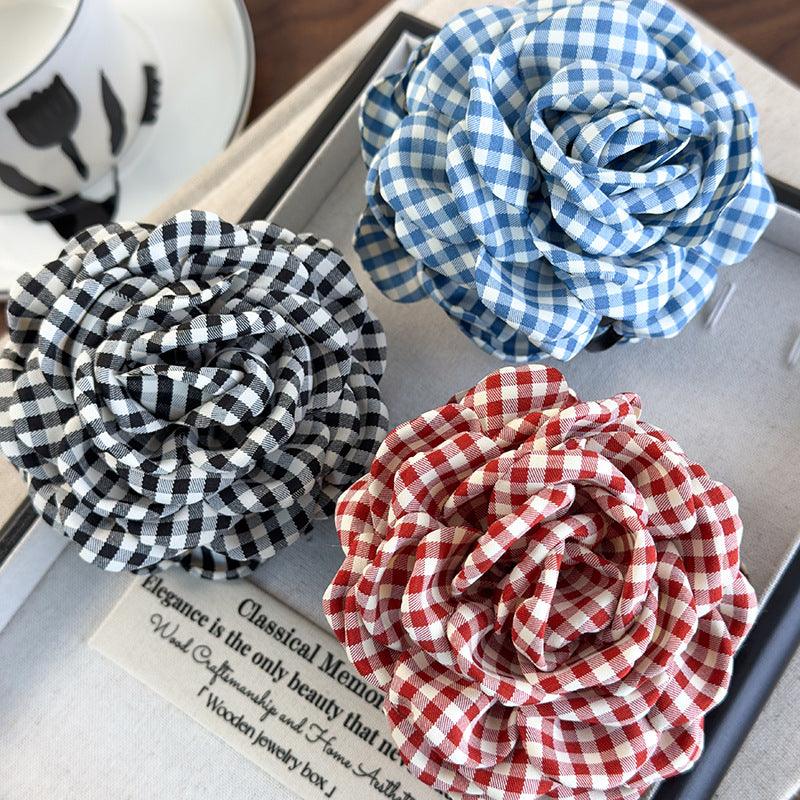 E廠-韓國法式復古格紋花朵抓夾女2025新款高級感後腦勺盤髮夾鯊魚夾「26590」25.03-1