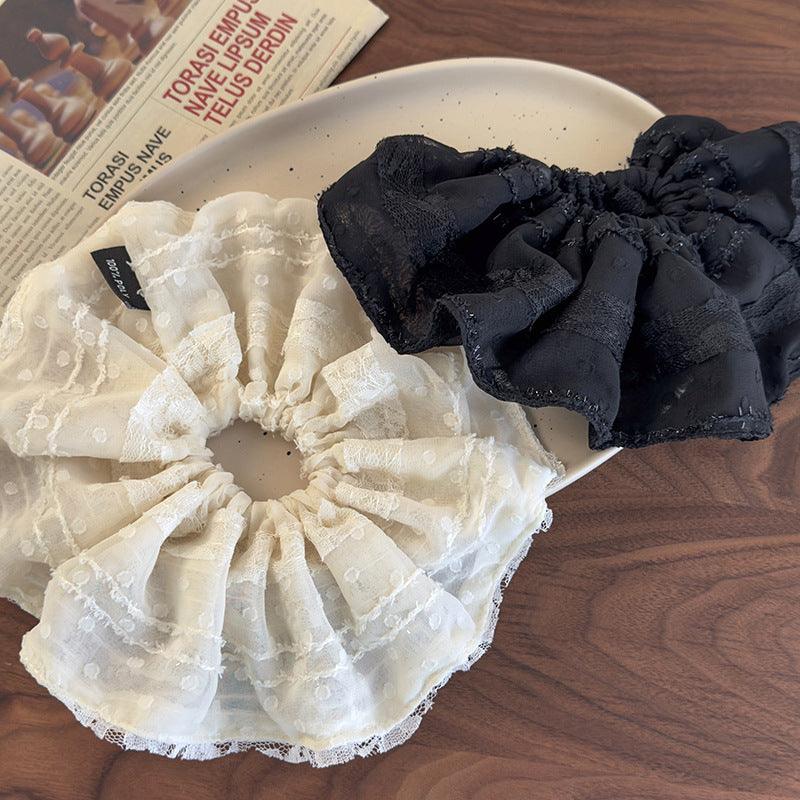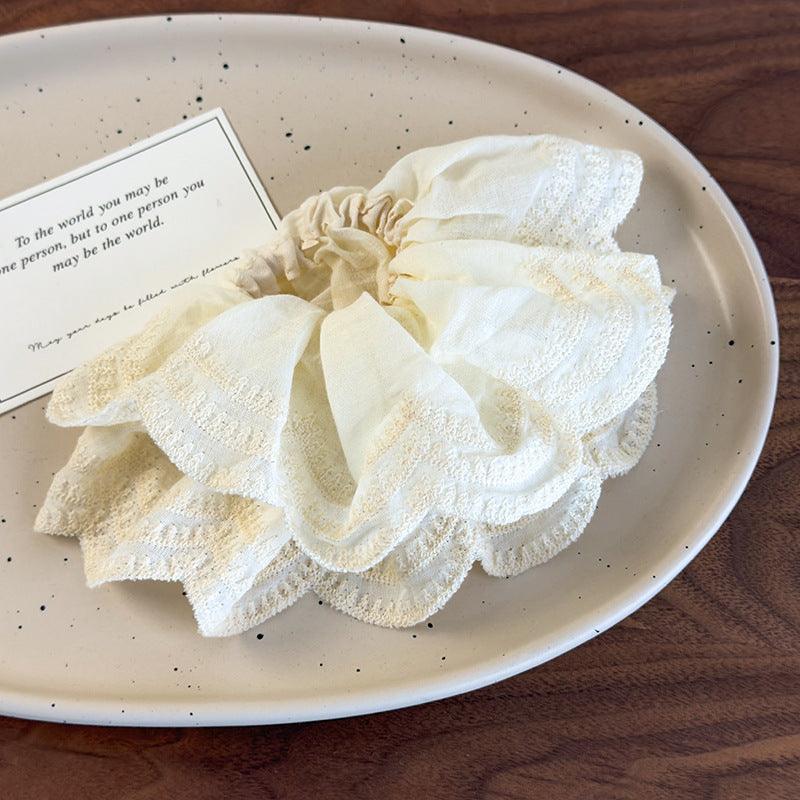 E廠-雙層法式蕾絲花邊豬大腸髮圈大號少女森系丸子頭優雅頭花飾品頭繩「26606」25.03-1
