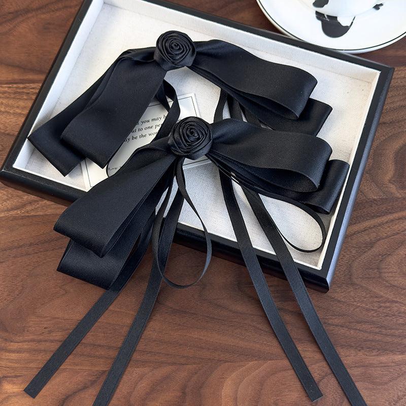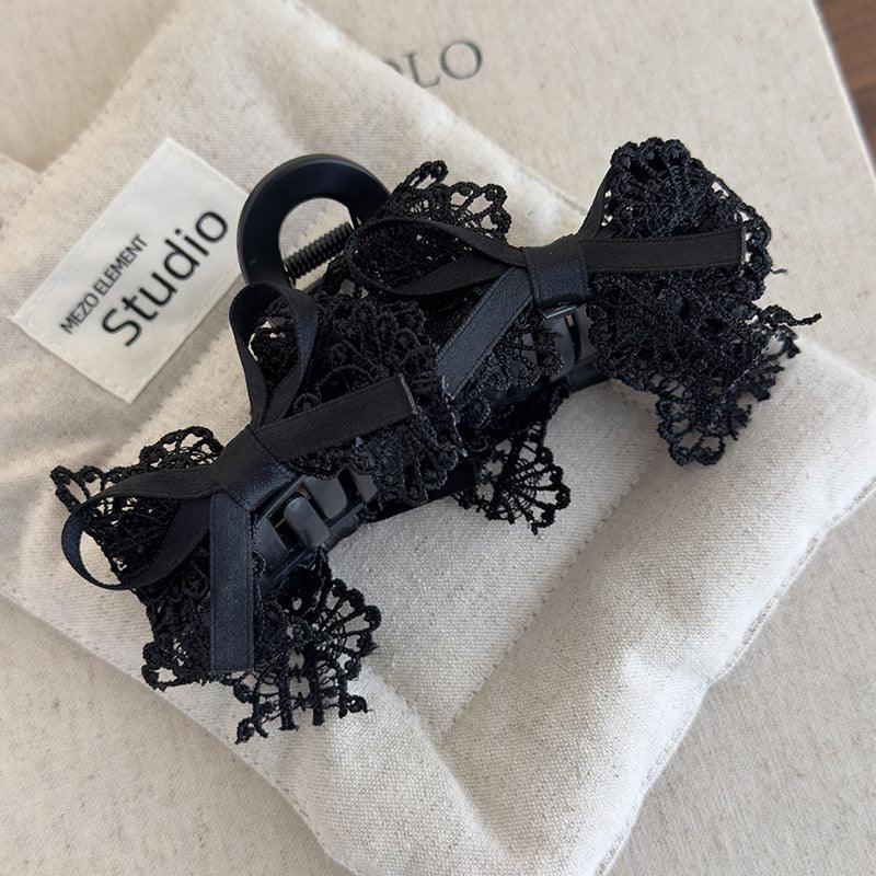 E廠-法式高級感黑色蕾絲蝴蝶結抓夾2025春季新款盤髮髮夾鯊魚夾髮飾女「26602」25.03-1