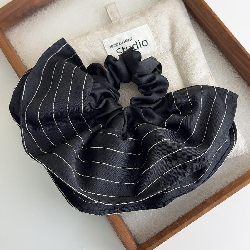 E廠-韓系復古裙擺雙層條紋髮圈高級感通勤氣質馬尾辮秋冬大腸髮繩髮飾「26439」25.02-1