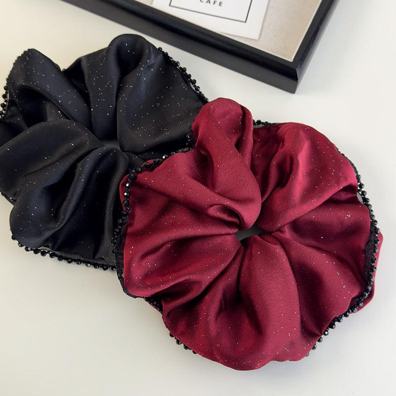 E廠-星光亮閃大腸髮圈女超大高級感丸子頭髮繩頭繩慵懶風緞面頭花頭飾「26486」25.02-1