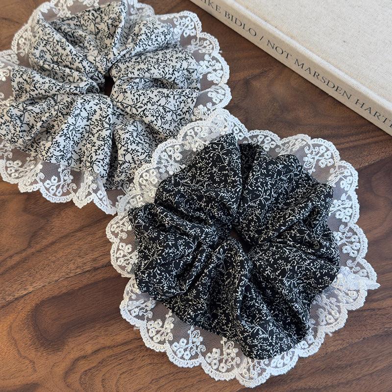 E廠-清新小碎花大號髮圈女新款精緻髮繩蕾絲邊少女法式大腸圈扎髮皮筋「26452」25.01-3
