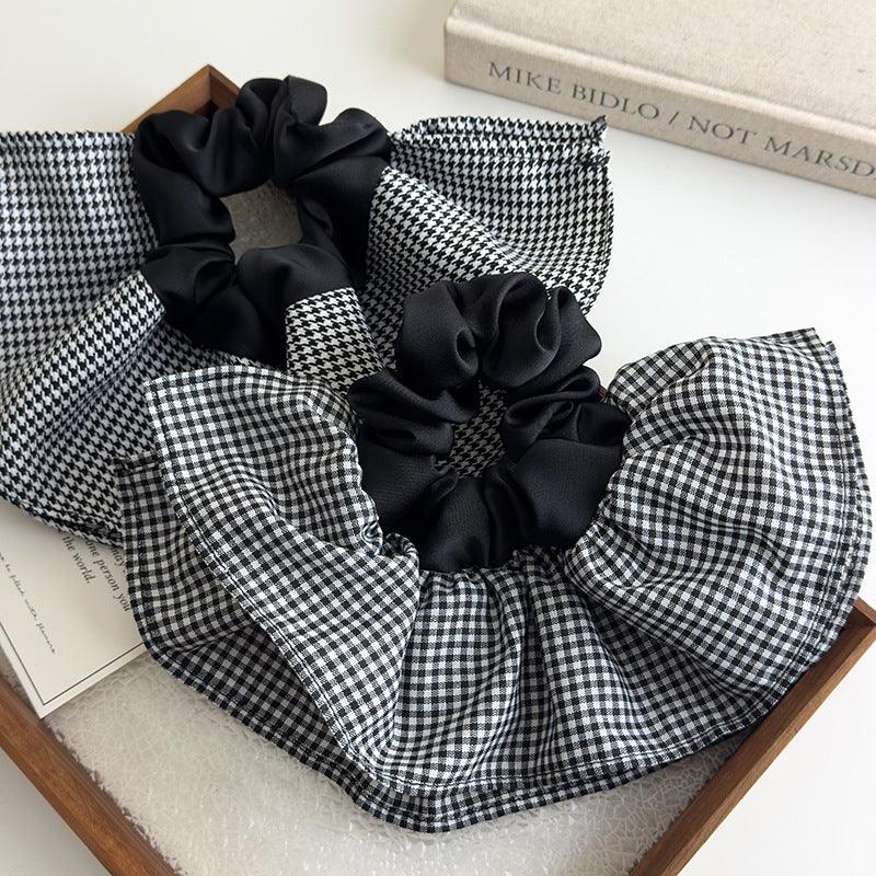 E廠-時尚鬆弛!千鳥格紋大裙擺後腦勺頭繩女顯臉小扎馬尾髮圈馬尾頭飾「26440」25.02-1