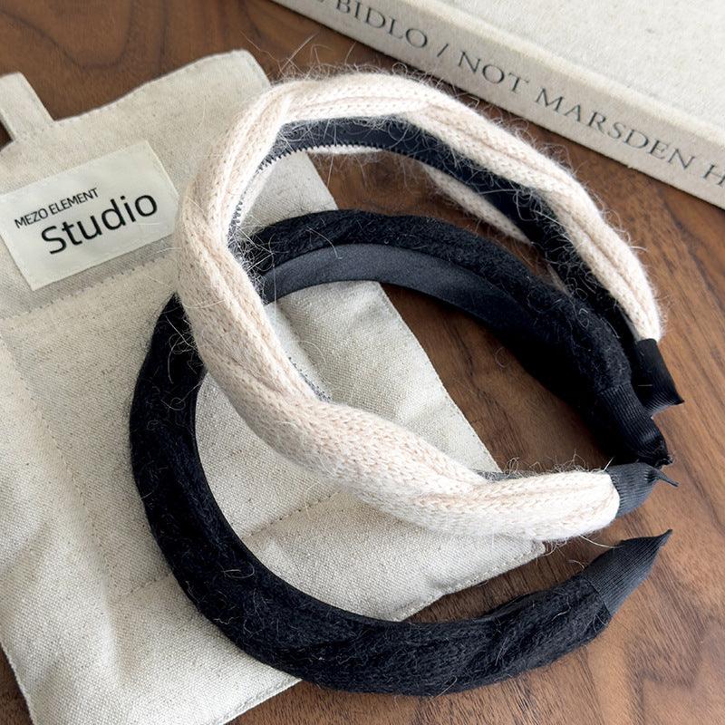 E廠-毛線髮箍毛絨髮卡秋冬新款洗臉化妝麻花百搭針織高顱頂軟糯髮飾品「24209」25.01-1