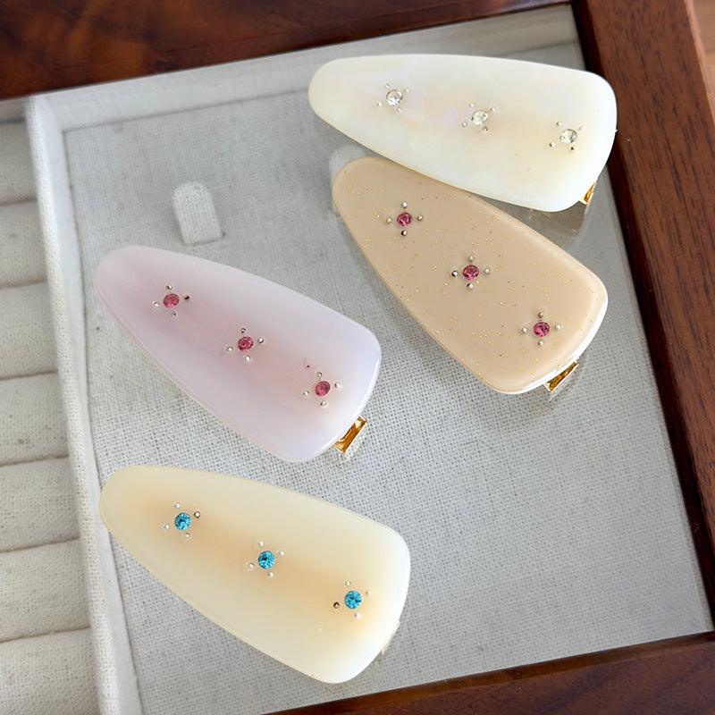 E廠-合金珍珠水鑽ins風邊夾銀色甜酷辣妹橢圓鴨嘴夾側邊夾子小號髮卡「23183」25.01-2