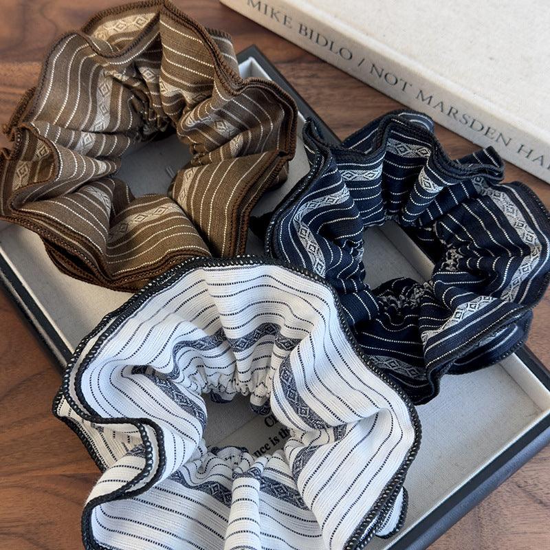 E廠-老錢風復古條紋大腸髮圈頭繩女2024新款高彈力耐用橡皮筋扎頭髮飾「25918」25.01-2
