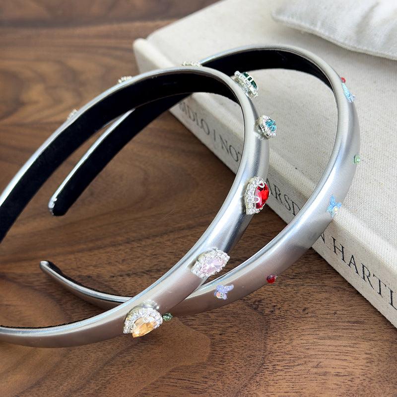E廠-y2k銀色彩鑽小蝴蝶髮箍甜美銀色皮質高級感頭箍洗臉髮飾頭飾新款「23833」25.01-2