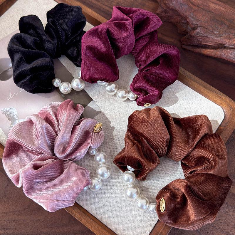 E廠-高級感絲絨珠珠大腸髮圈女氣質優雅低馬尾扎髮繩高彈力不傷髮頭繩「26136」24.10-3