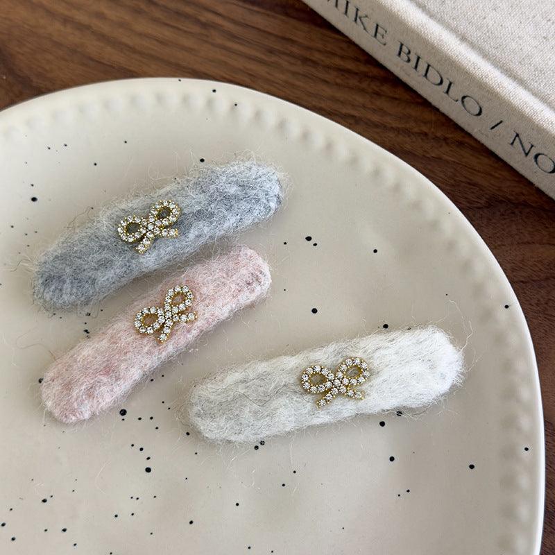 E廠-經典款!絲絨鏤空蝴蝶結髮夾瀏海側邊BB夾秋冬頭飾甜美高級感髮飾「26381」24.12-3