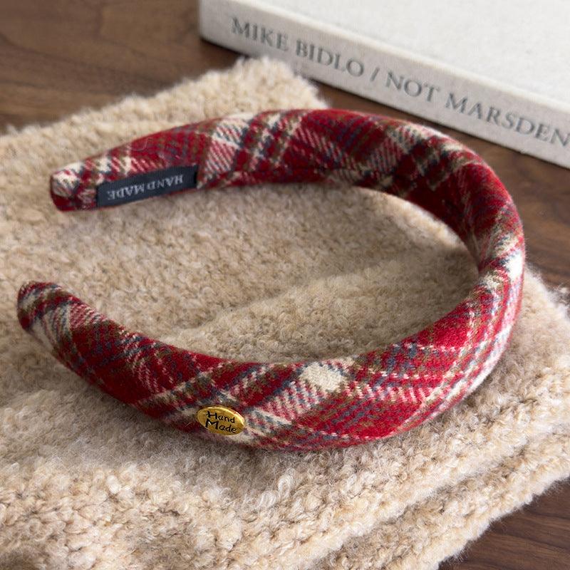 E廠-高顱頂紅色格紋髮箍女2025新款洗臉壓髮頭箍碎髮神器髮捆新年頭飾「26430」24.12-4
