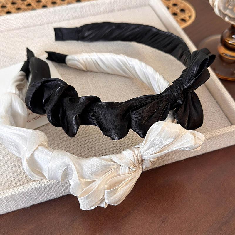 E廠-韓版新款甜美可愛珠光絲滑褶皺減齡布藝蝴蝶結髮箍髮卡頭飾髮飾品「25204」24.04-2