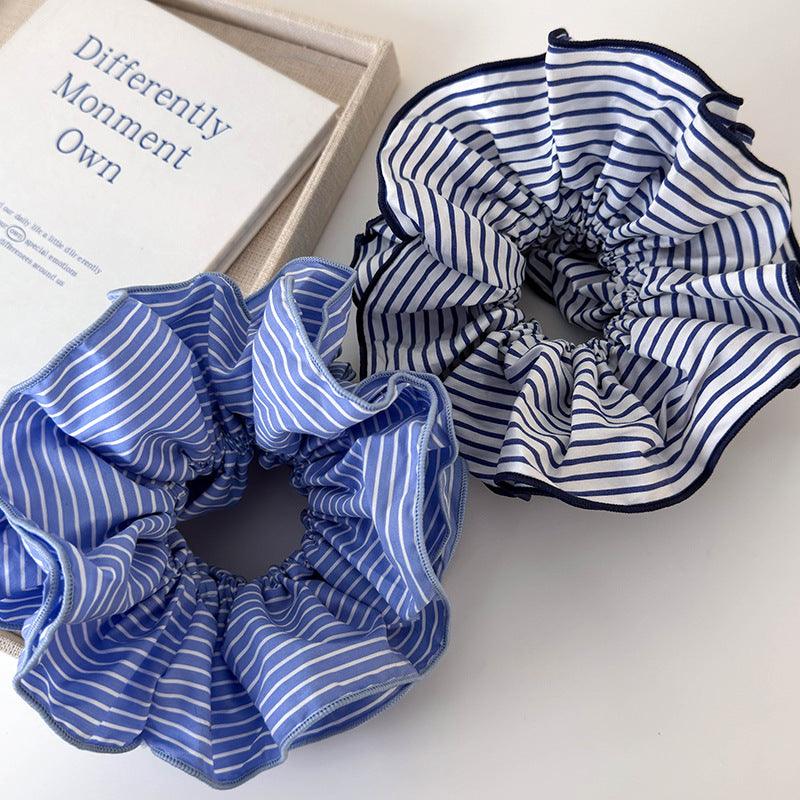 E廠-韓版新款甜美網紅同款小清新藍色條紋雙層大腸髮圈頭飾百搭髮飾「25699」24.07-3