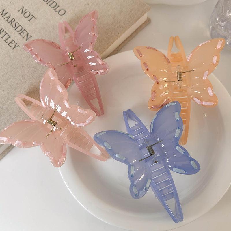 E廠-韓系甜美絲帶蝴蝶抓夾百搭氣質鯊魚夾後腦勺盤髮夾髮抓髮卡髮飾女「25573」24.06-2