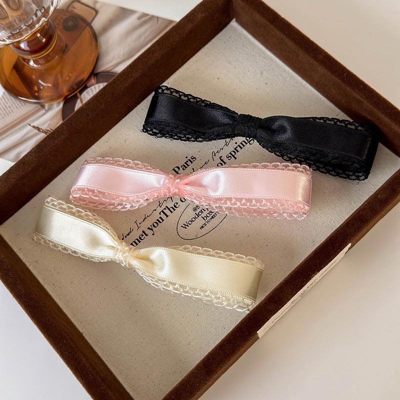 E廠-蕾絲蝴蝶結法式復古飄帶玫瑰花髮夾高級感氣質後腦勺百搭時尚髮卡「26143」24.10-3
