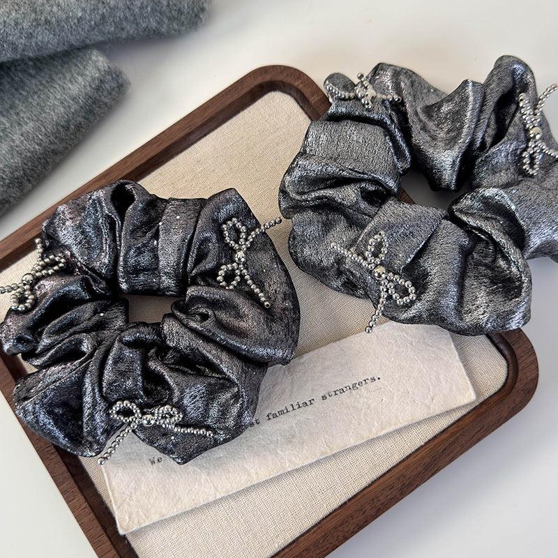 E廠-蝴蝶結亮片髮圈亮絲肥腸圈豬大腸髮繩光澤感低馬尾溫柔髮飾「26205」24.11-1