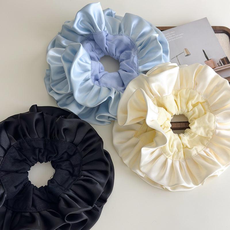 E廠-芭蕾風褶皺花邊雙層緞面大腸髮圈超大丸子頭髮繩女扎頭髮皮筋頭繩「26357」24.12-2