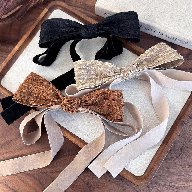 E廠-赫本風蝴蝶結飄帶髮夾2024新款復古優雅低馬尾布藝彈簧夾髮飾女「26174」24.10-4