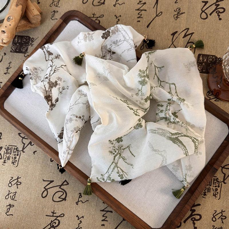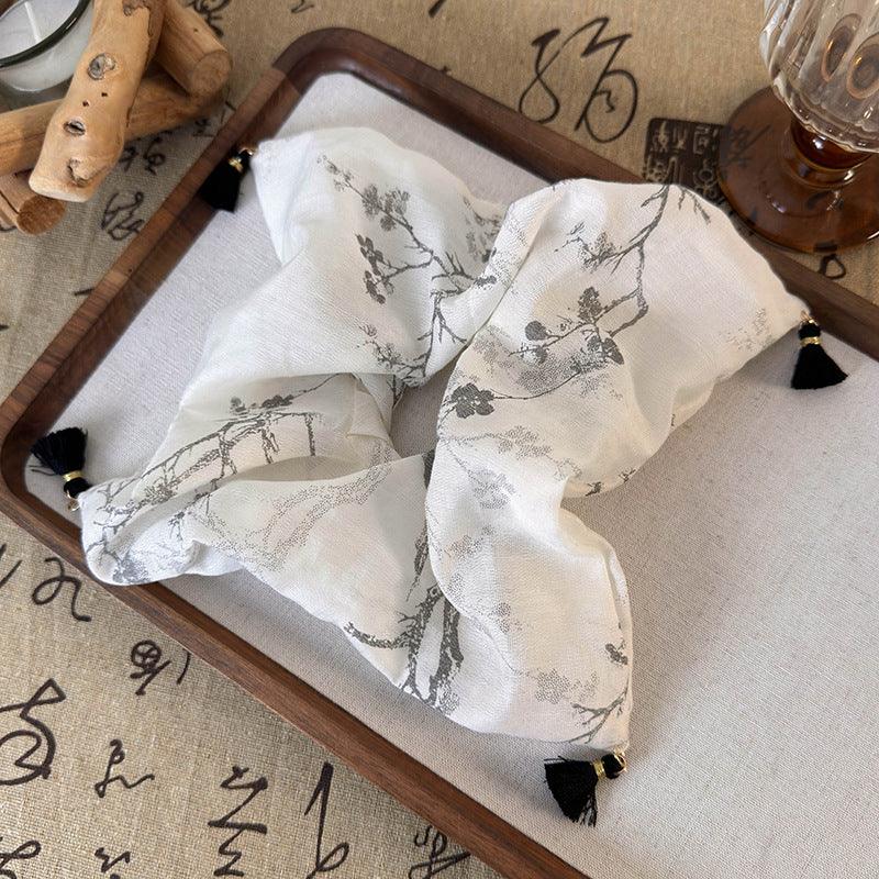 E廠-新中式頭飾女水墨畫流蘇方巾墨竹髮圈髮繩大腸圈皮筋國風漢服頭繩「25267」24.04-3
