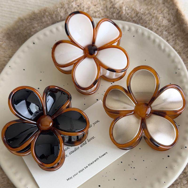 E廠-Vintage中古琥珀色花朵抓夾高級感壓克力鯊魚夾後腦勺盤髮夾髮卡「26413」24.12-4