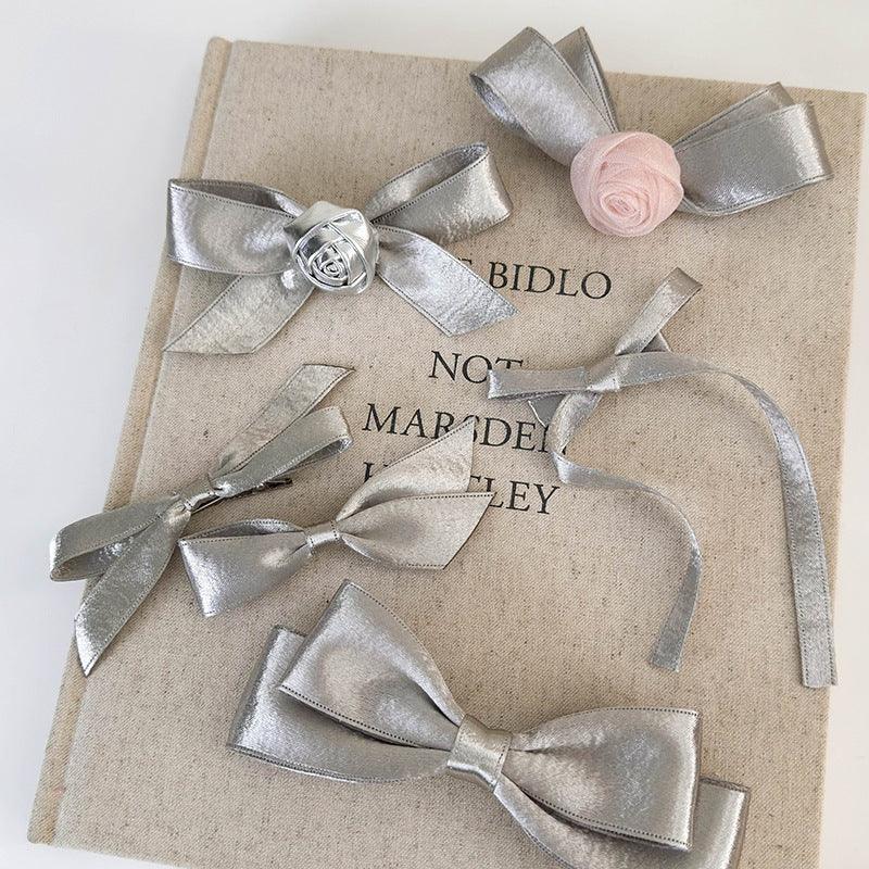 E廠-韓系銀色絲光蝴蝶結玫瑰髮夾甜酷彈簧夾髮卡鴨嘴夾瀏海夾子髮飾「25550 25534A 25473」24.06-2