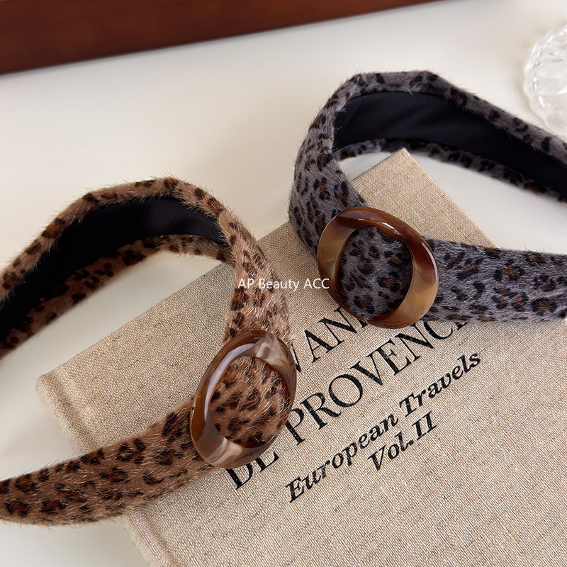 E廠-豹紋新款!美拉德玳瑁色圓環寬邊髮箍時尚復古高顱頂顯臉小頭箍「27531」25.10-1