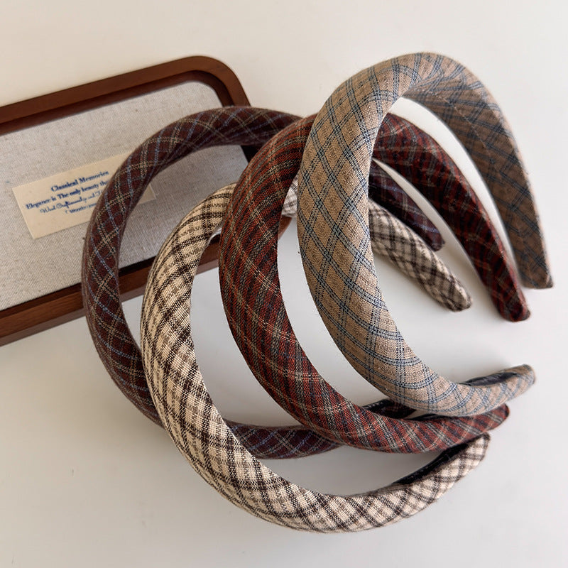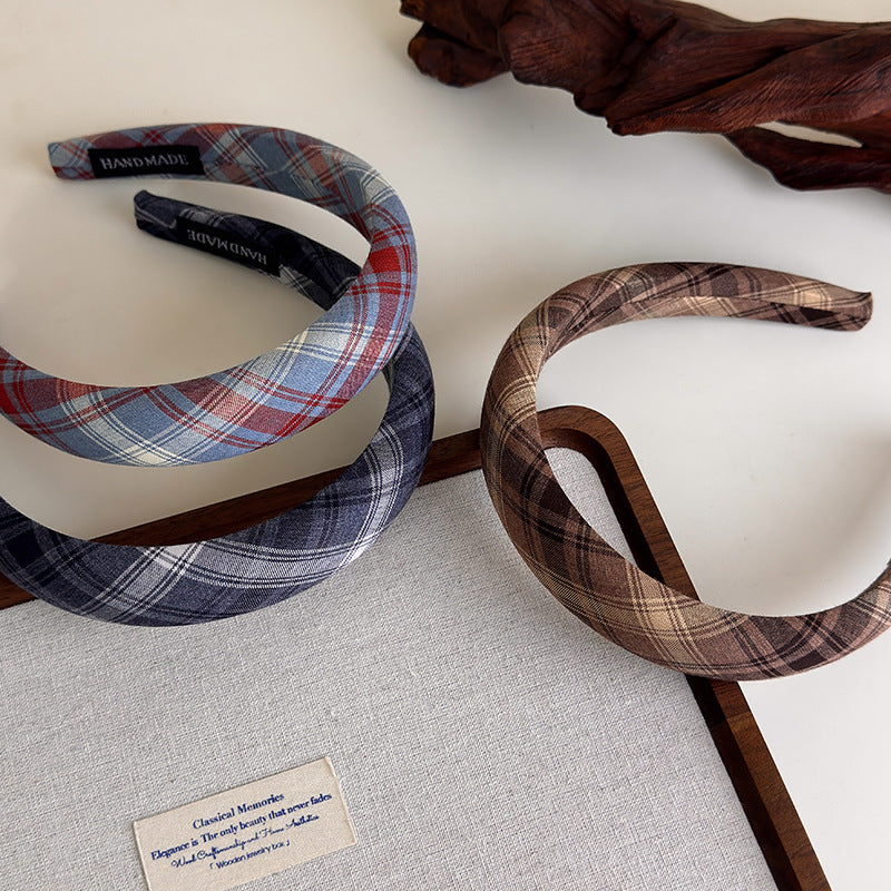 E廠-簡約百搭深色系布藝格紋髮箍女初秋時尚氣質高顱頂頭箍小眾髮飾品「27280」25.08-1