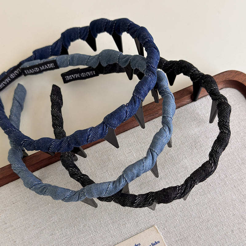 E廠-韓系纏繞編織牛仔髮箍帶齒防滑齒頭箍日常簡約經典百搭波浪頭飾「27245」25.07-4