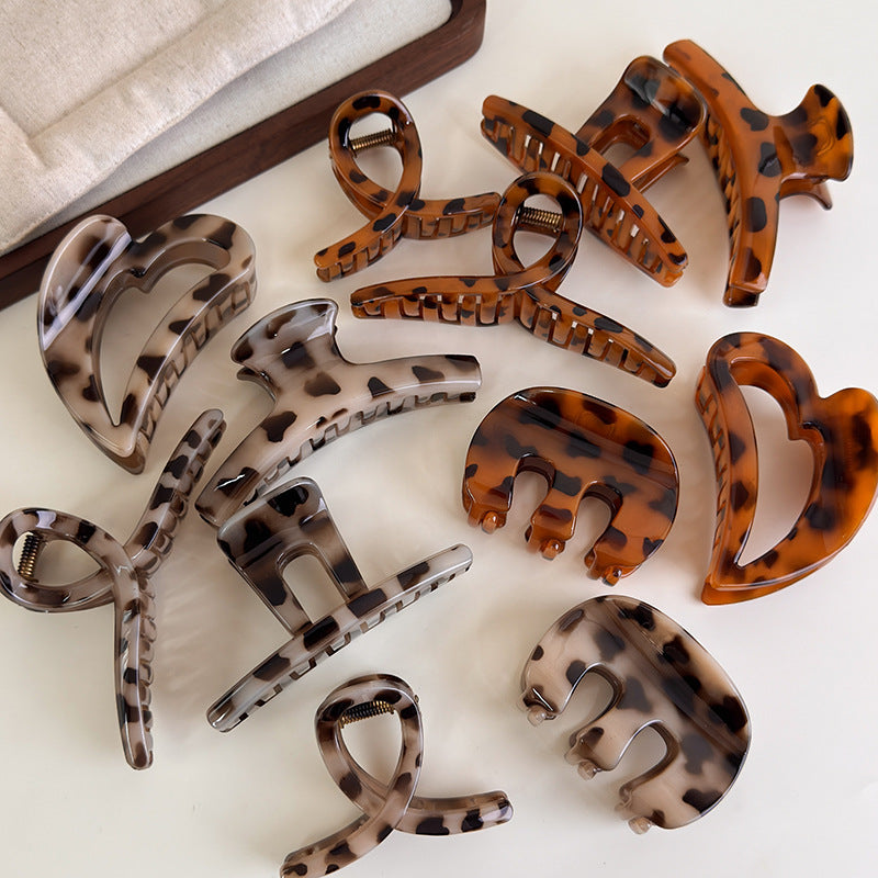 E廠-高級感法式復古豹紋大號抓夾女後腦勺髮夾氣質鯊魚夾百搭新款髮飾「27301」25.08-1