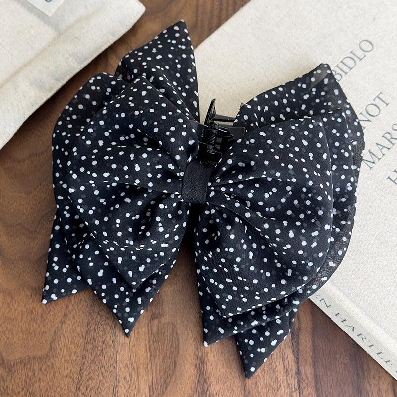 E廠-法式復古網紗波點飄逸蝴蝶結抓夾氣質雪紡半抓秋冬髮飾女髮夾夾子「26446」25.01-2
