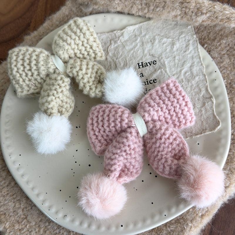 E廠-秋冬可愛少女系毛線蝴蝶結髮夾甜美毛球髮夾瀏海夾側邊碎髮夾髮卡「24114」25.01-2