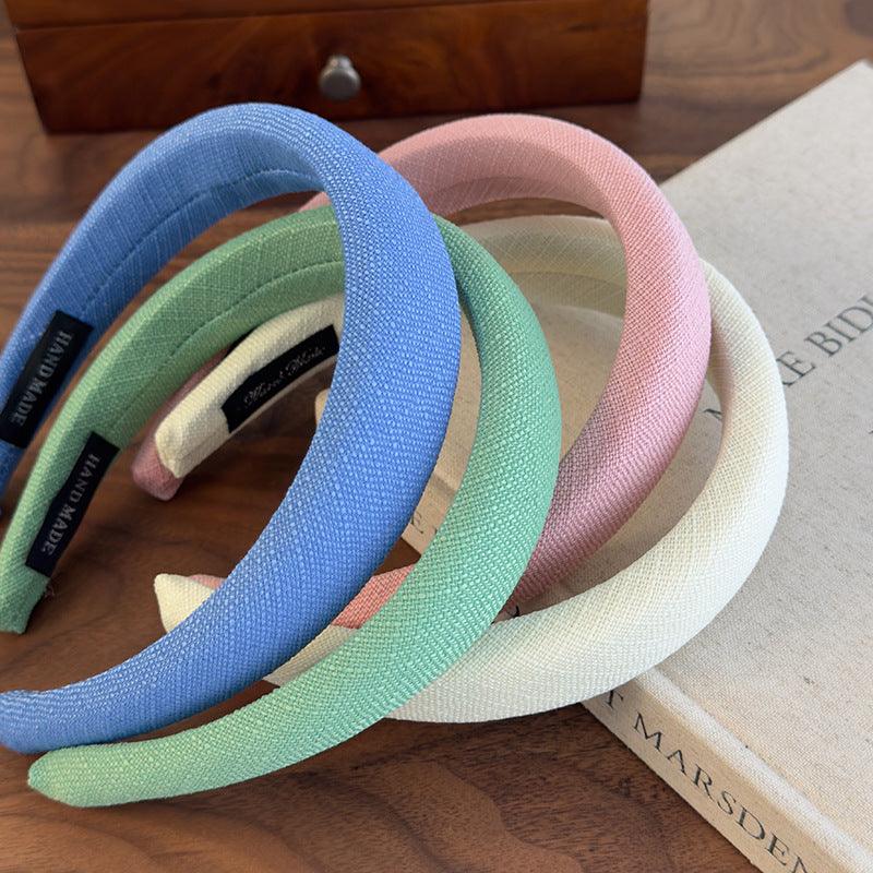 E廠-韓國新款奶油褶皺布藝髮卡高顱頂髮箍女寬邊簡約氣質百搭外出頭箍「25471」25.01-2