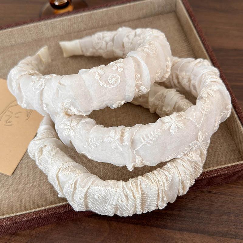 E廠-法式蕾絲刺繡褶皺髮箍高顱頂布藝髮箍女2024新款洗臉ins寬邊髮卡「25470」24.05-4