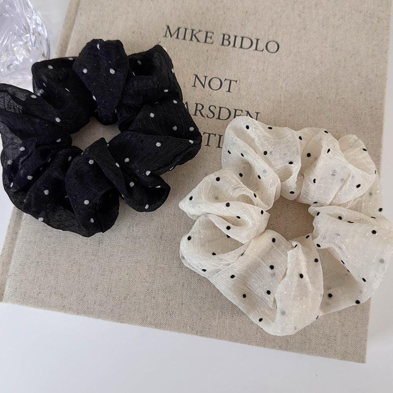 E廠-溫柔法式小眾復古網紗雪紡波點大腸髮圈丸子頭皮筋髮繩高級感髮飾「25494」24.05-5