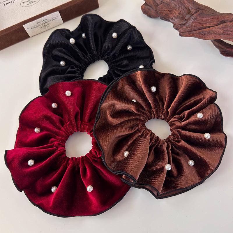 E廠-復古絲絨釘珍珠大腸髮圈秋冬高級感法式大號髮繩溫柔優雅頭繩髮飾「26141」24.10-3