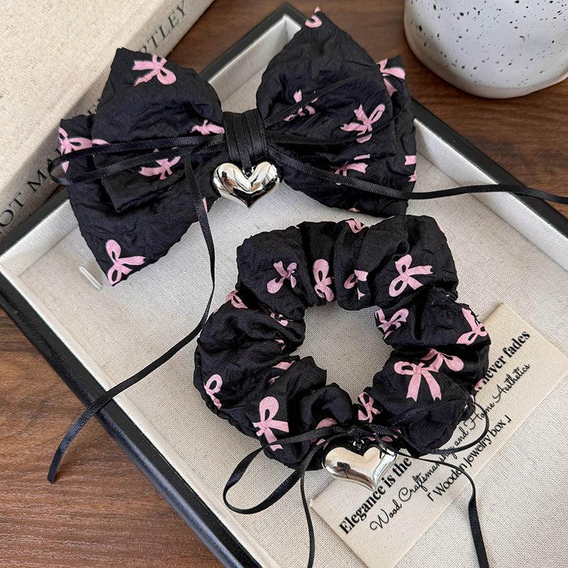 E廠-y2k甜辣網紅款可愛少女黑粉色蝴蝶結彈簧夾後腦勺大腸圈髮飾頭飾「25522」24.05-5