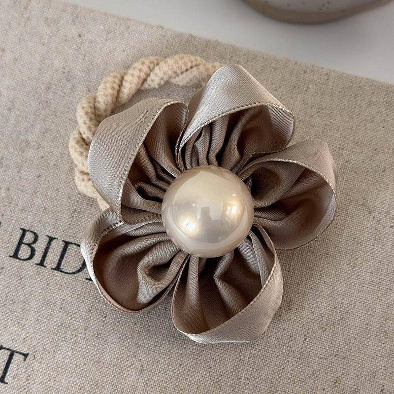 E廠-ins高級感法式山茶花髮圈珍珠皮筋女扎頭髮繩馬尾頭繩髮飾頭飾品「25560」24.06-2