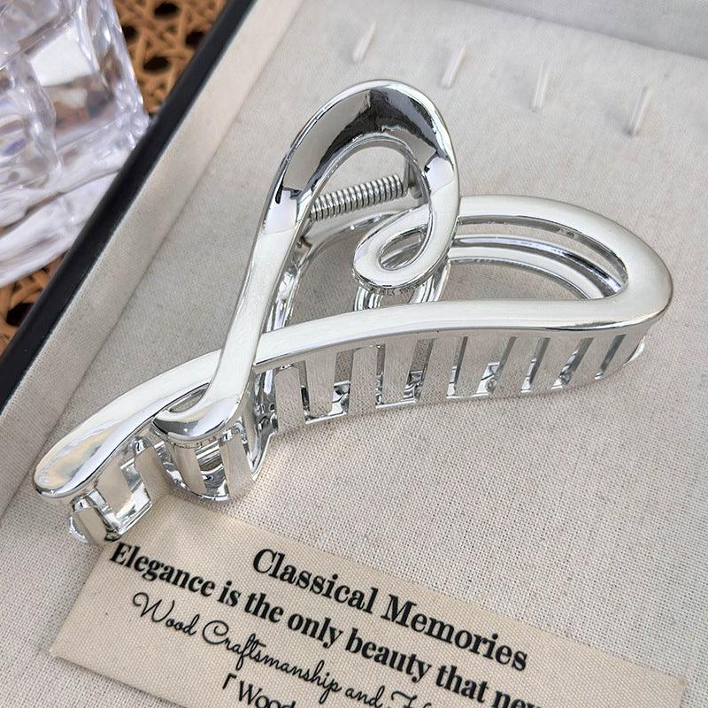 E廠-質感仿金屬銀色系抓夾愛心髮抓鯊魚夾後腦勺半扎盤髮夾子髮飾2024「25424」24.05-3