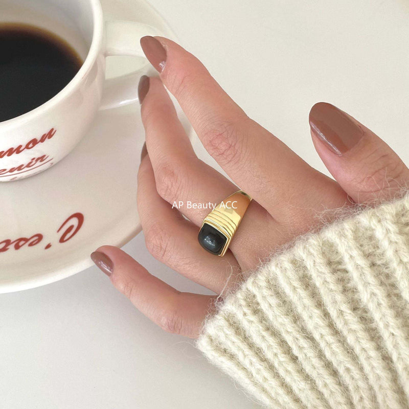 F廠-韓國韓版飾品S925純銀戒指個性首飾時尚氣質可調節黑瑪瑙戒指「J1709」25.12-1
