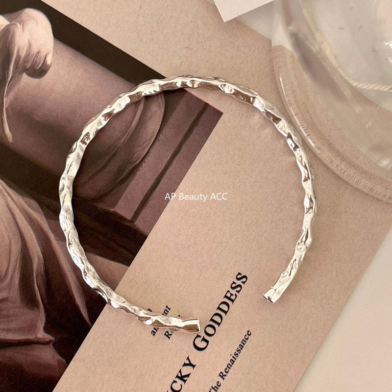 F廠-925純銀磨砂銀紋理手鐲手環ins小眾時尚氣質百搭冷淡風潮酷不規則「A255」25.12-1